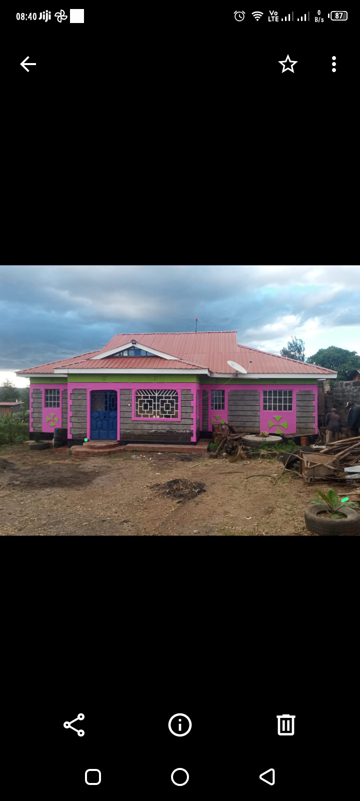 It's a QUICK SALE 3bedroom house on 1⁄4 acre It has a kitchen, a dining area too A detached 2rooms servant quarter. can be used as a store It's approximately 800Mitres from Nakuru -Nyahururu road in subukia township It has a simple zero grazing structure for about 3 daily cow