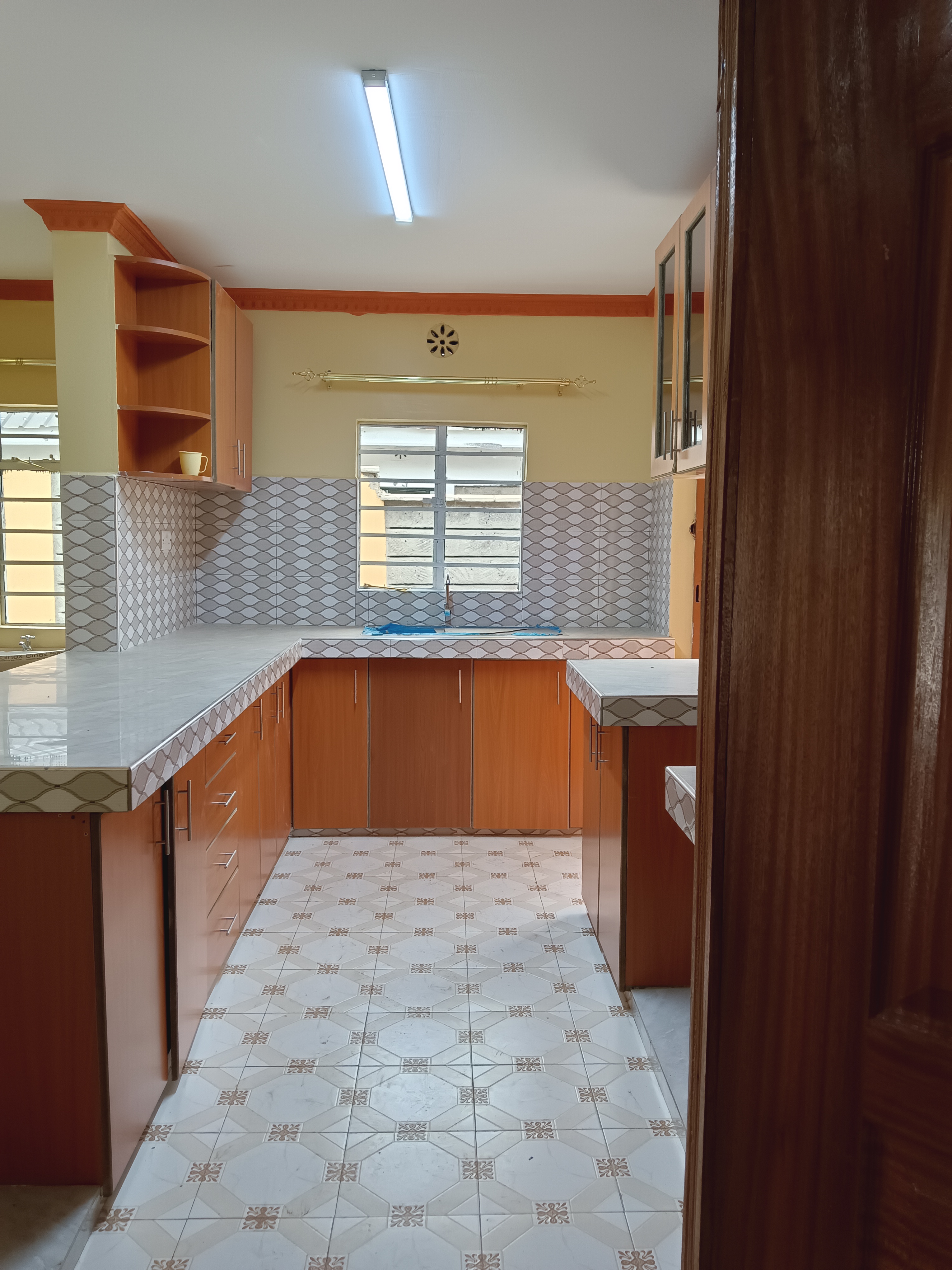 *Spacious kitchen with ample cabinet space, a space for your fridge and cooker,